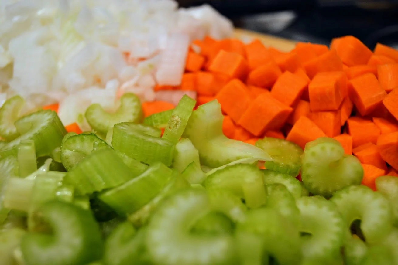 The elements of a basic mirepoix, basically a good flavor base to anything, carrots, celery, and onion.